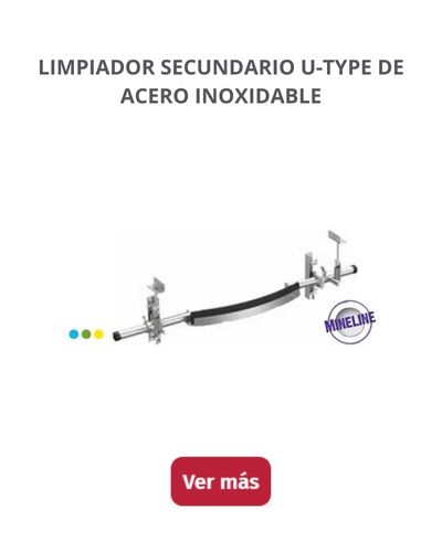 - Limpiador Secundario U-Type de Acero Inoxidable: un limpiador altamente resistente que está compuesto de acero inoxidable con cualidades anticorrosión. Sus hojas de alto alcance logran una limpieza profunda, pueden escurrir materiales húmedos y logran arrastrar residuos (incluso aquellos que se han compactado en la cinta).